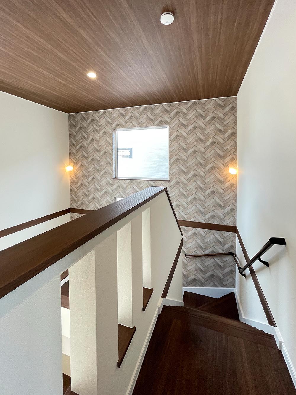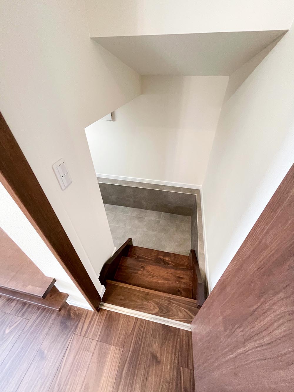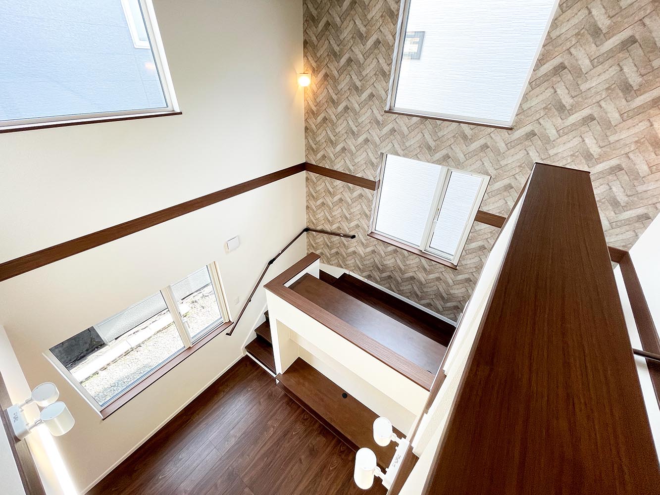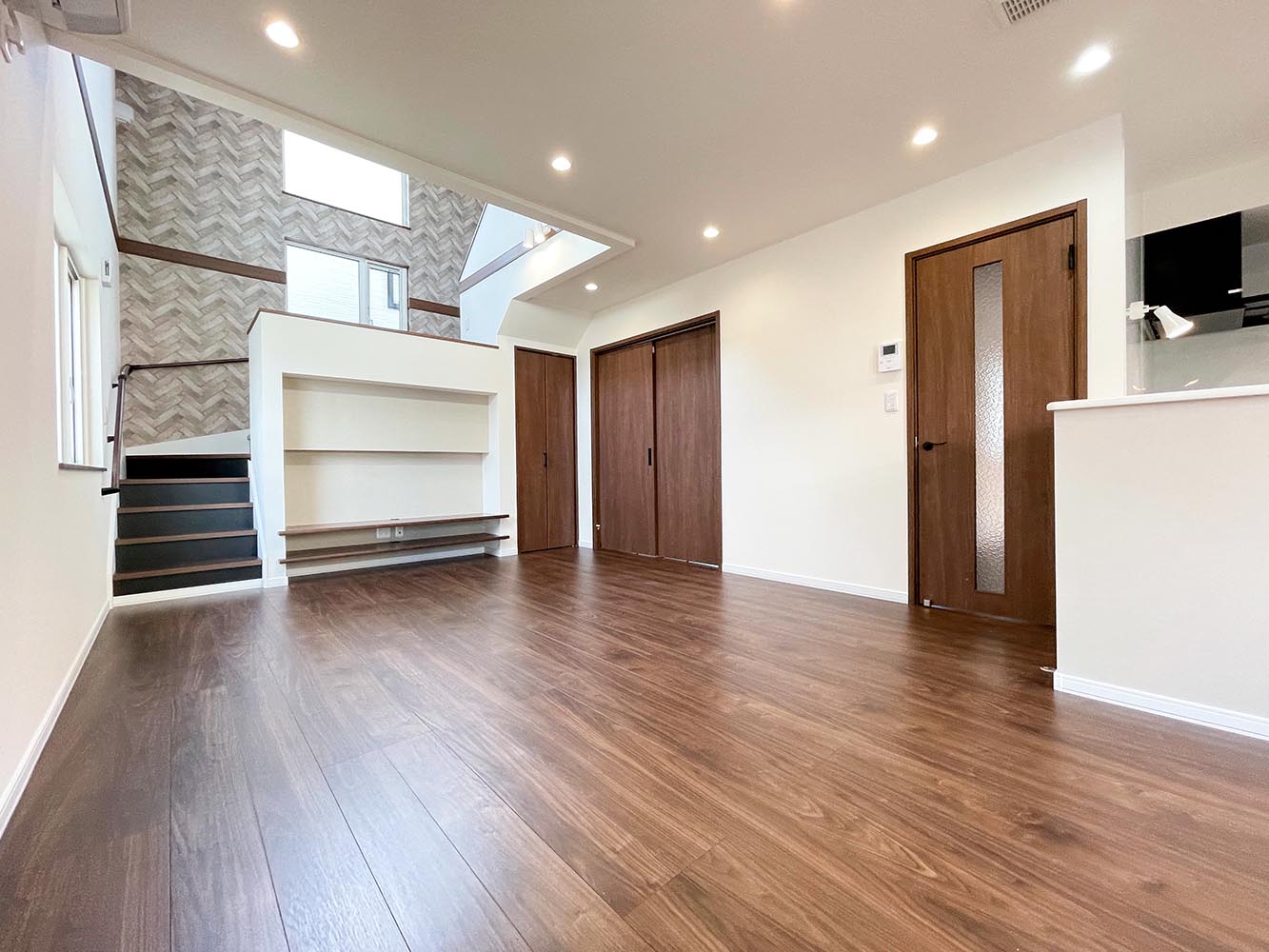 建物は、「家の中も眺めがいい、大収納の中2階、ラピュタ1.・1/2」。2階ホール、中2階からの眺めがいいんです。中2階は1階と2階の間のスペース。そのスペースにテーブルカウンターを設置し、様々な使い方で空間を楽しんでいただだけます。例えば、キッチンの向かい側にあるのでこの中2階スペースを子供たちの勉強スペースにすると、キッチンからお父さん、お母さんが子供たちの雰囲気を見ながら安心してお仕事。「進み具合はどうかな?そろそろ休憩にする?」と声もかけやすいんです。また大人の趣味のスペースとして、本棚を持ってきて読書スペースとして、またカフェスペースとして等家族の発想力で様々な使い方ができちゃいます。中2階下も収納だけじゃない可能性大の魅惑のスペース。収納としての利用はもちろん、猫ちゃんわんちゃんのくつろぎスペースとして。またここでも気軽に読書をするヌックスペースとして、子供たちの秘密の基地としてなどなど、ワクワクが沢山のスペースです。写真だけでは伝わりづらい空間、是非一度ご見学を!