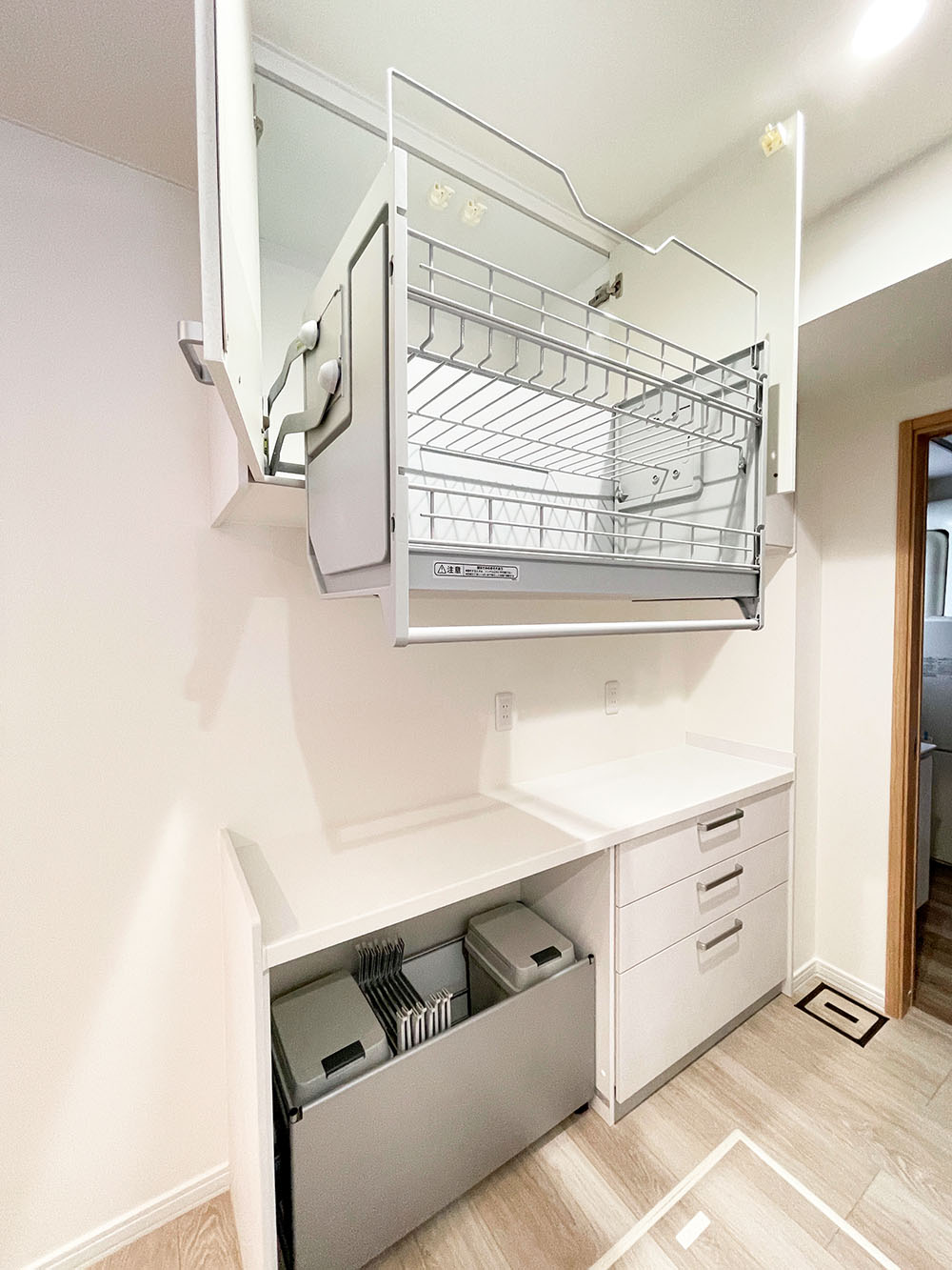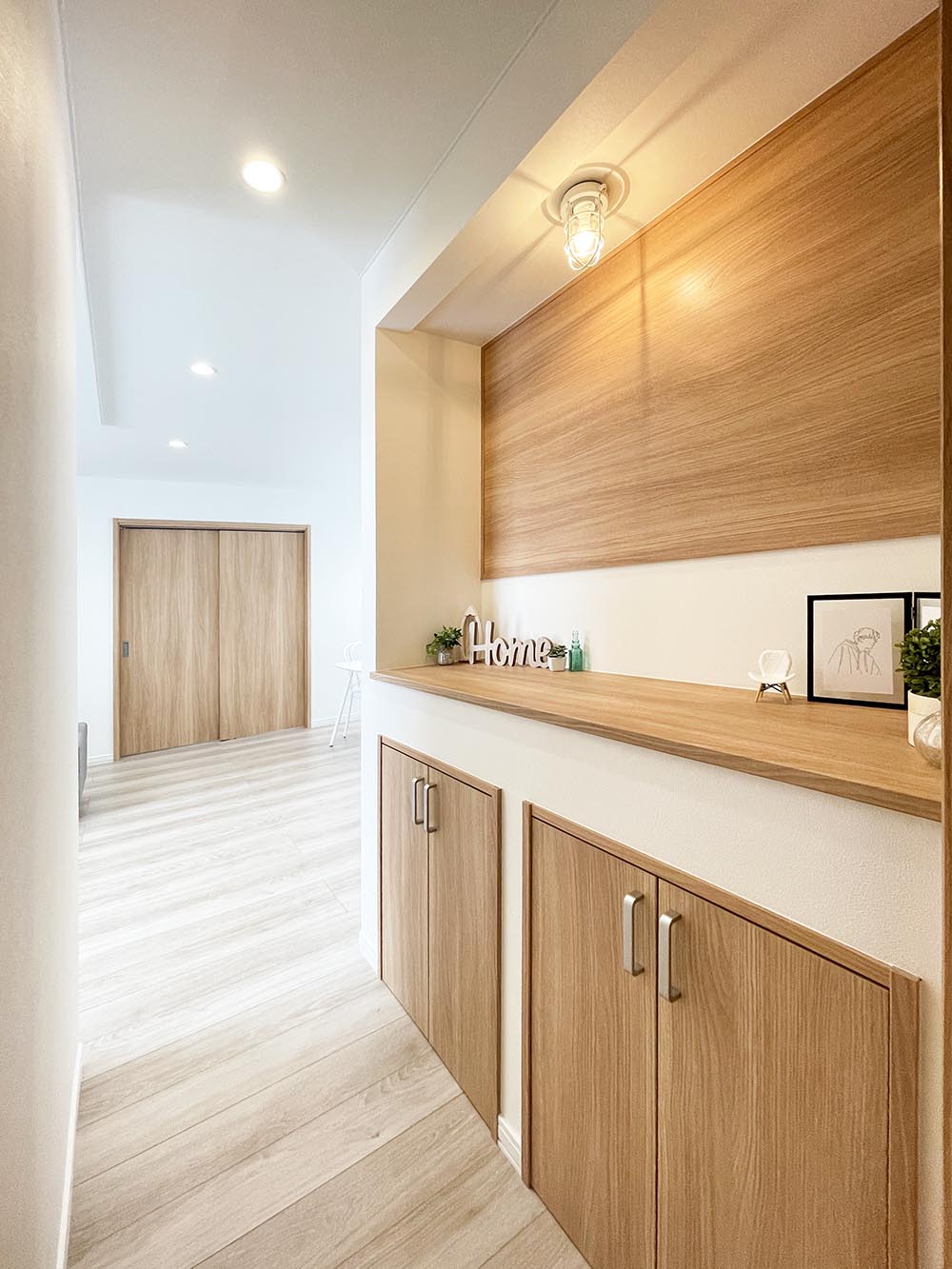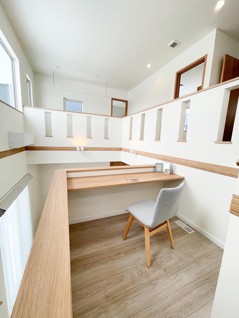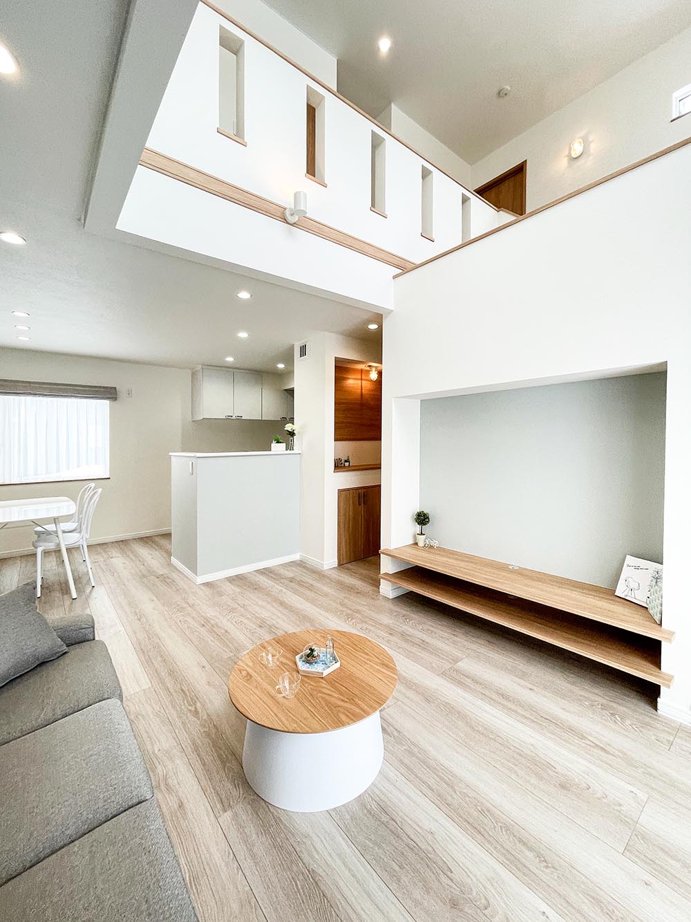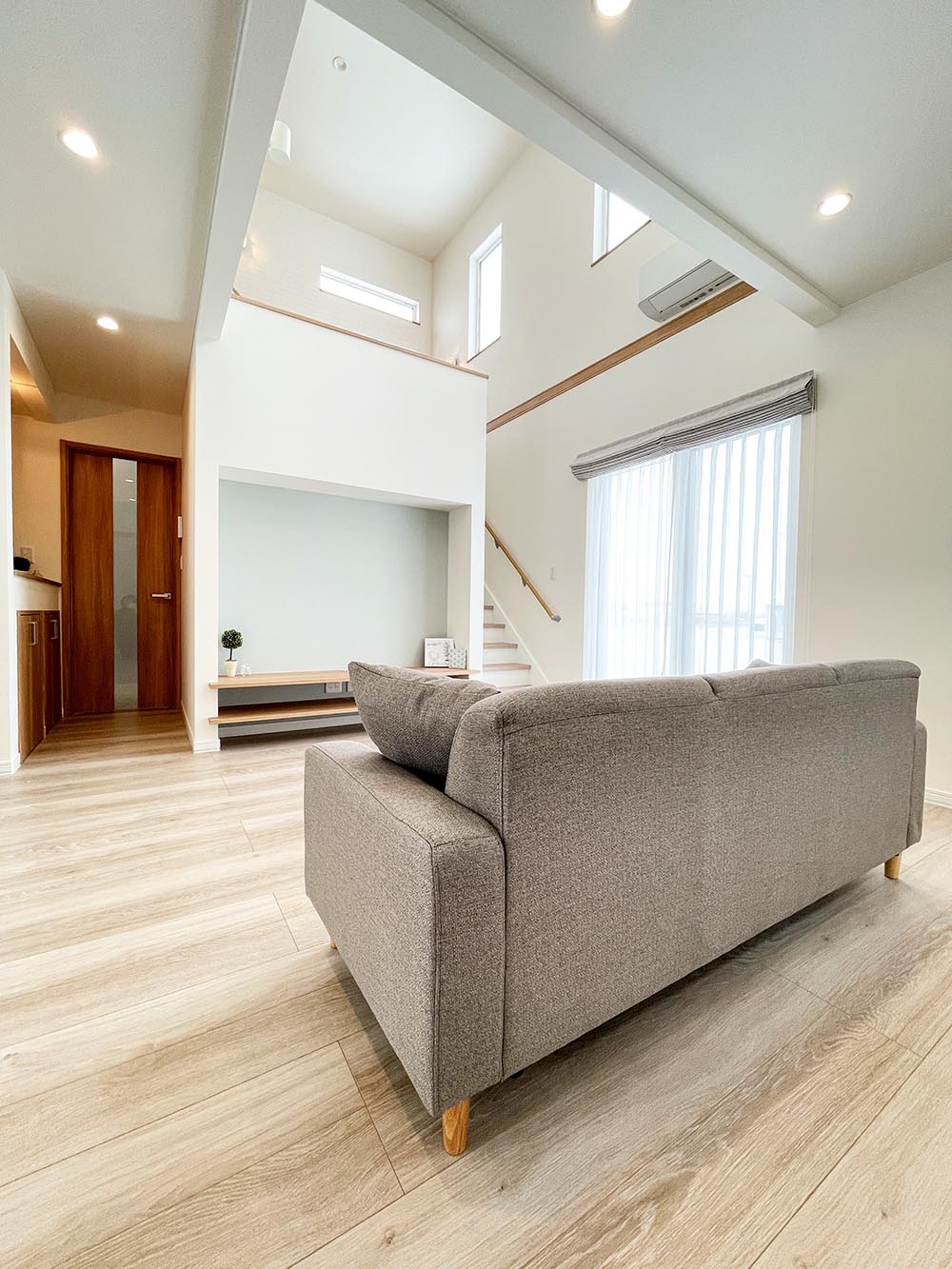 中2階の下は収納になっています。この収納スペースはしっかりと内装も施されますので、収納としてはもちろん、子供たちの秘密基地や、わんちゃんねこちゃんたちの寛ぎスペース、または大人の為のWEB会議スペースとしてなど、家族の想像力で様々に使えるワクワクのスペース。