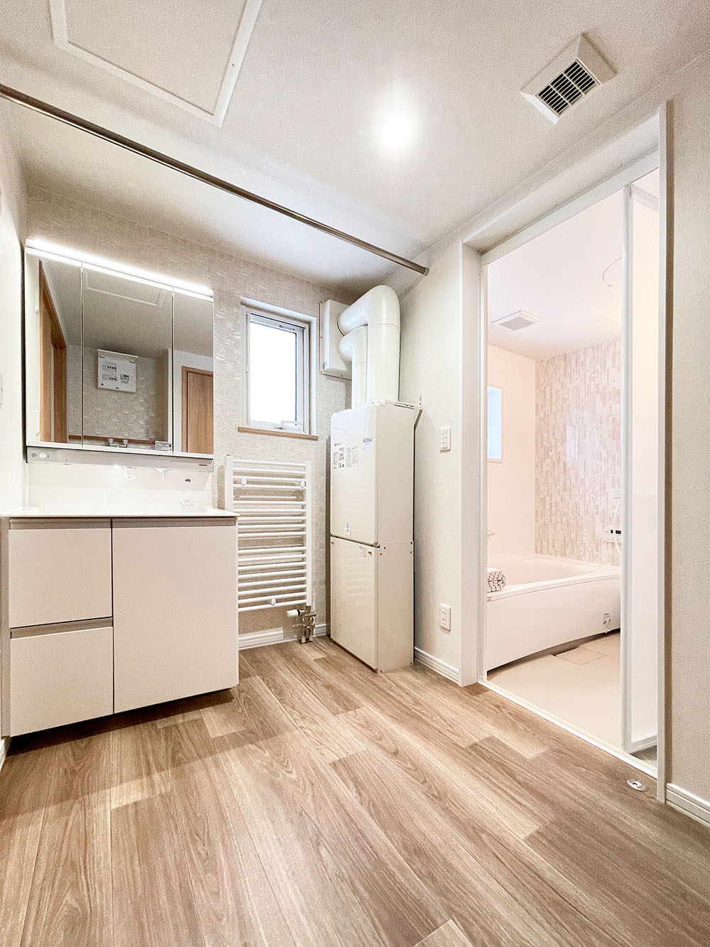 - 洗面脱衣室には洗濯ものを干す棒が設置済み
