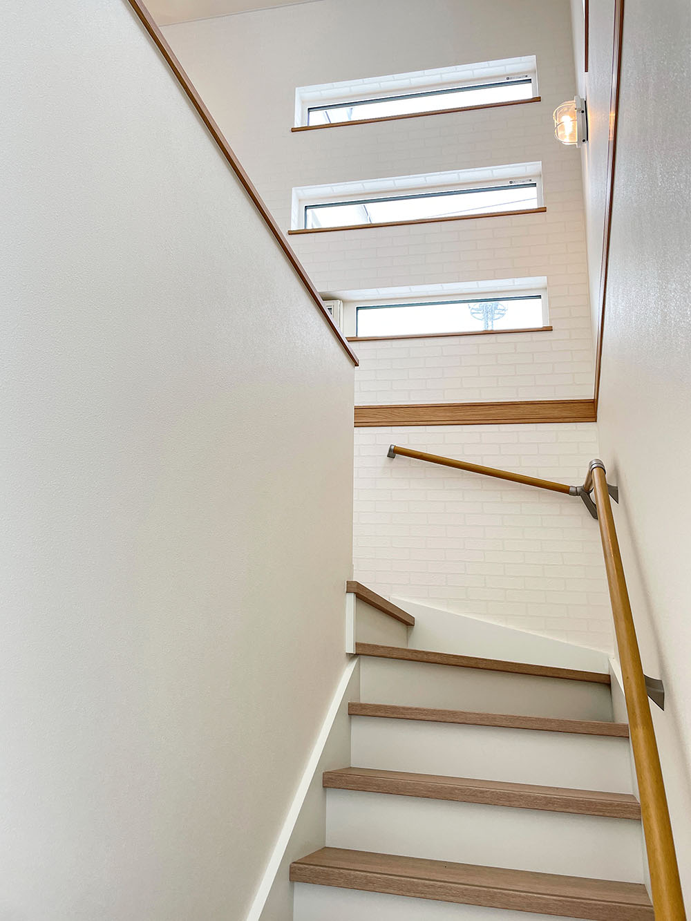 建物は、「家の中も眺めがいい、大収納の中2階 ラピュタ1・1/2」です。中2階はリビング階段。
