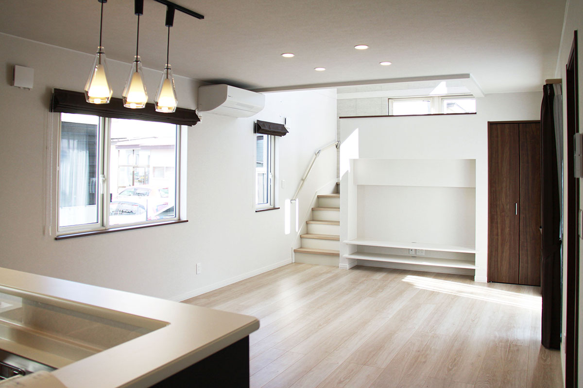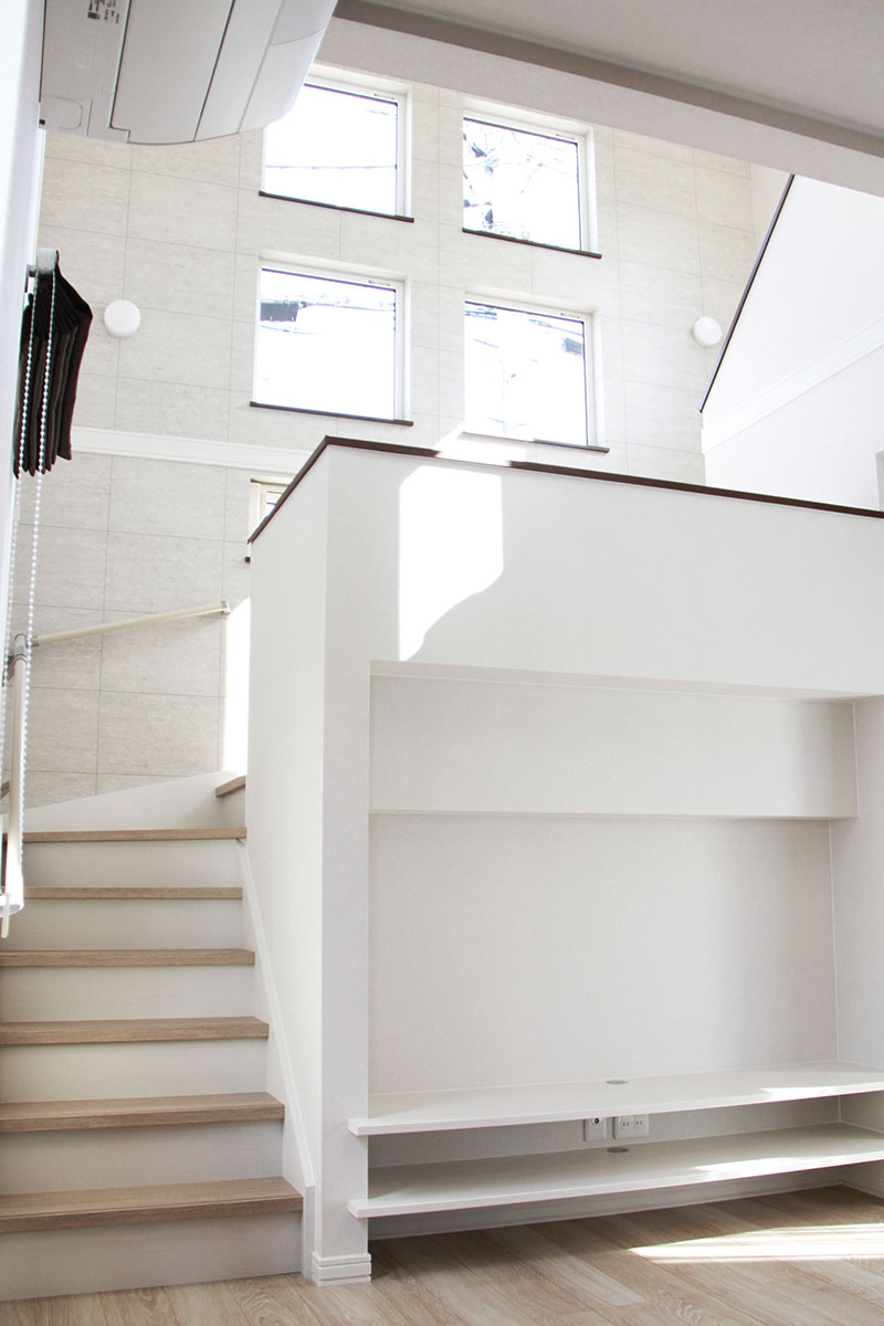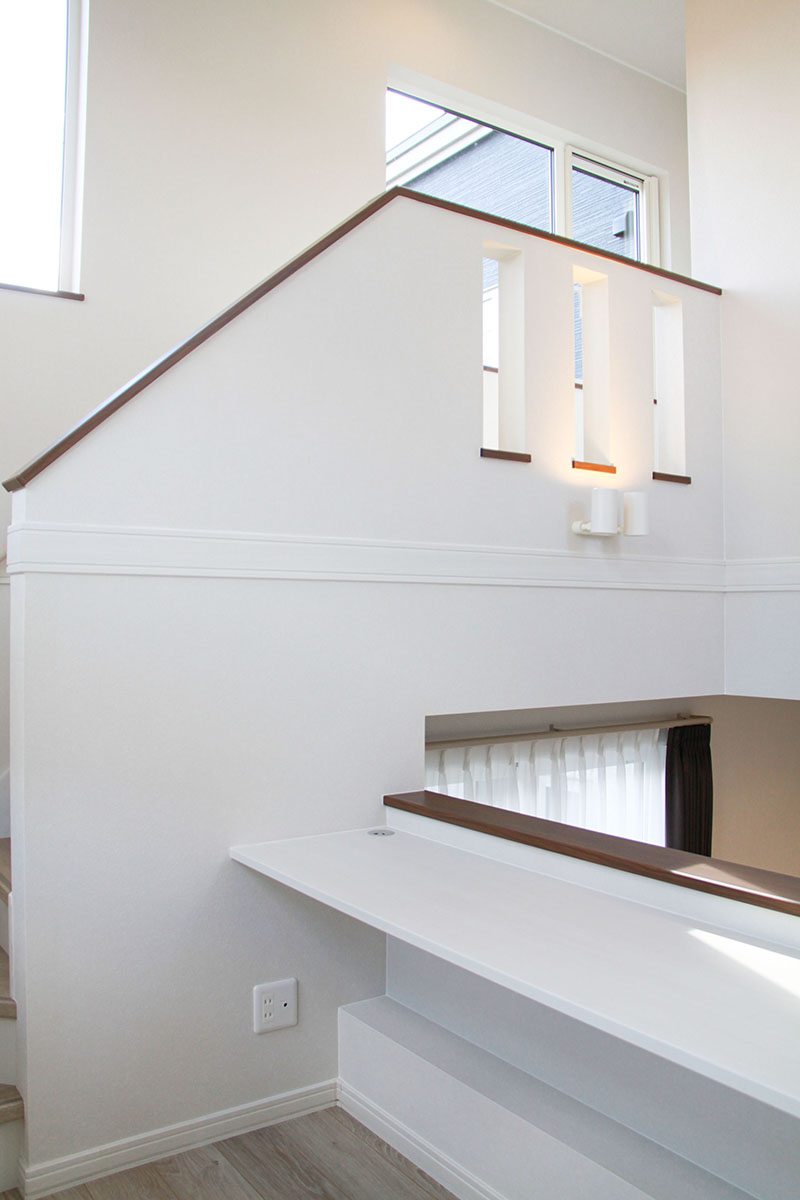 こちらの建売住宅はキッチンと向かい側に中2階がありますので、お父さん、お母さんが家事をしながらお子様は中2階でお勉強。こんな感じでもお子様の様子を感じることができます!お子様たちも安心して遊びやお勉強ができますよ!もちろん、大人のくつろぎの場としても有効活用できます!言葉や写真では表現しきれないのでぜひぜひ一度見学にいらしてください!