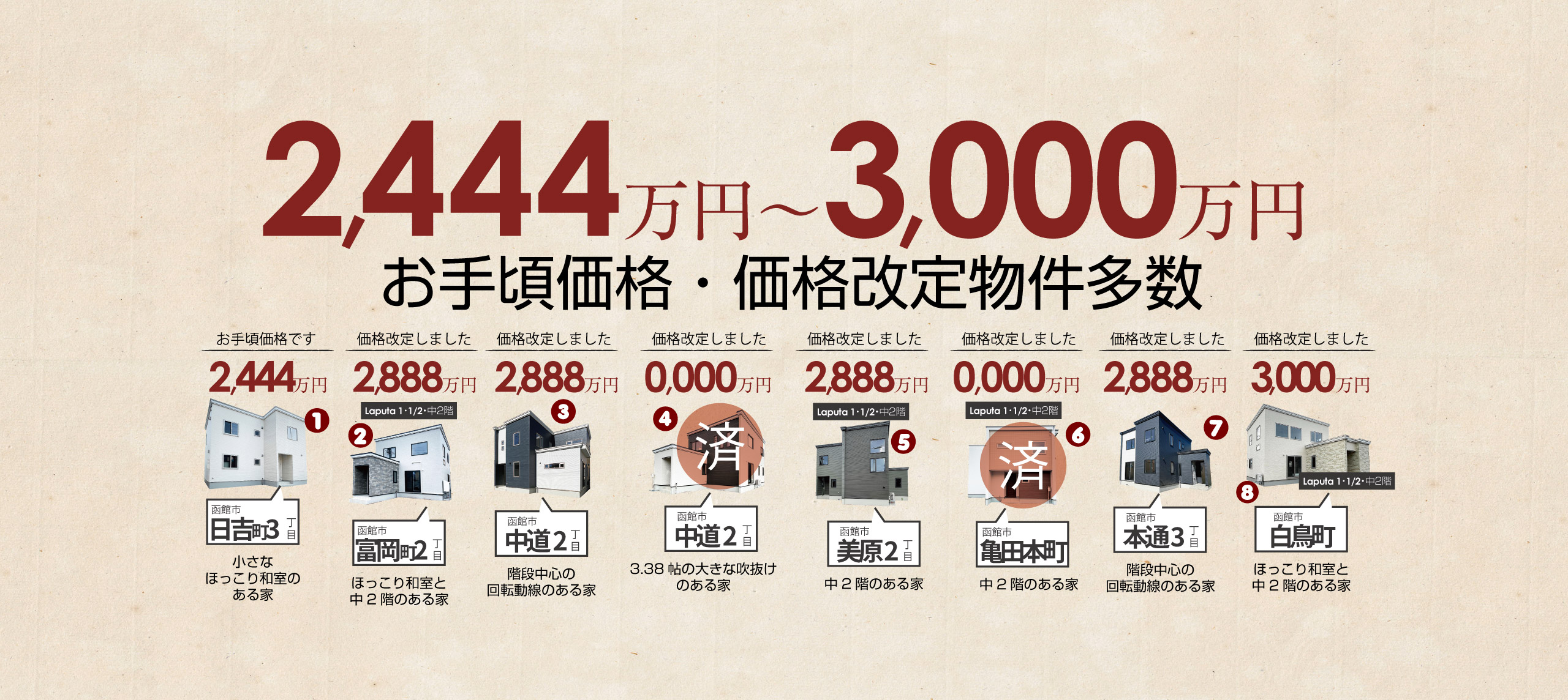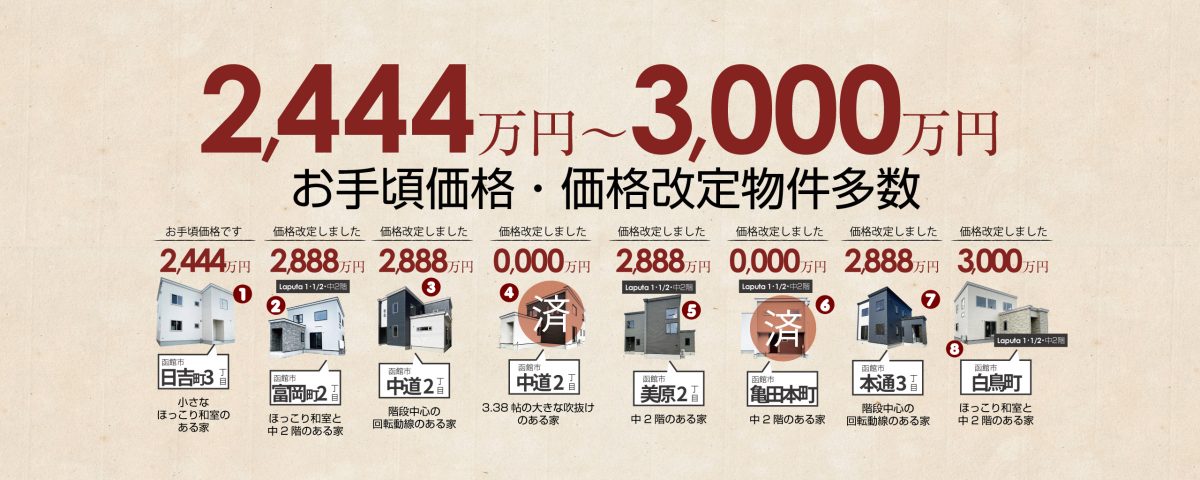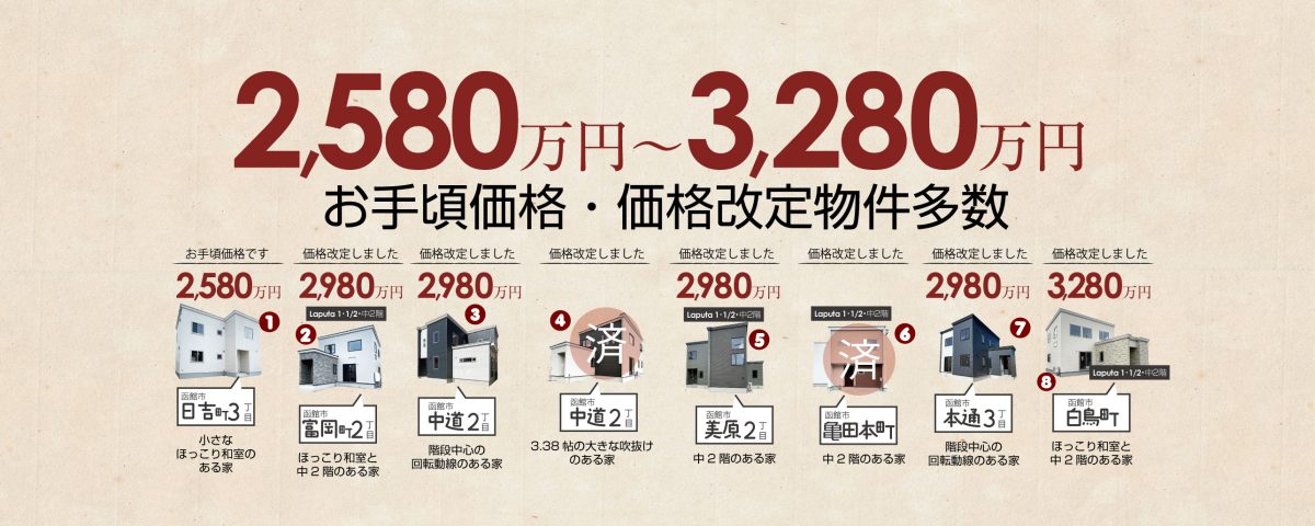 価格改定物件・お手頃価格物件のご紹介です。価格改定物件は現在8棟ございます。各物件のご紹介です。