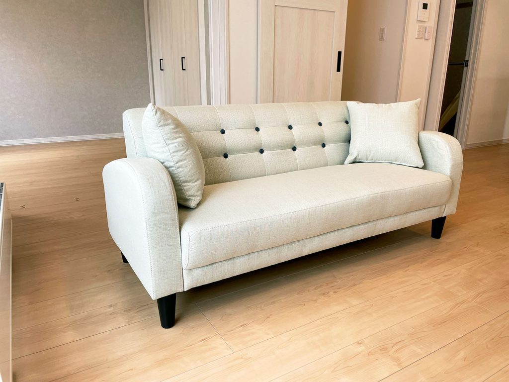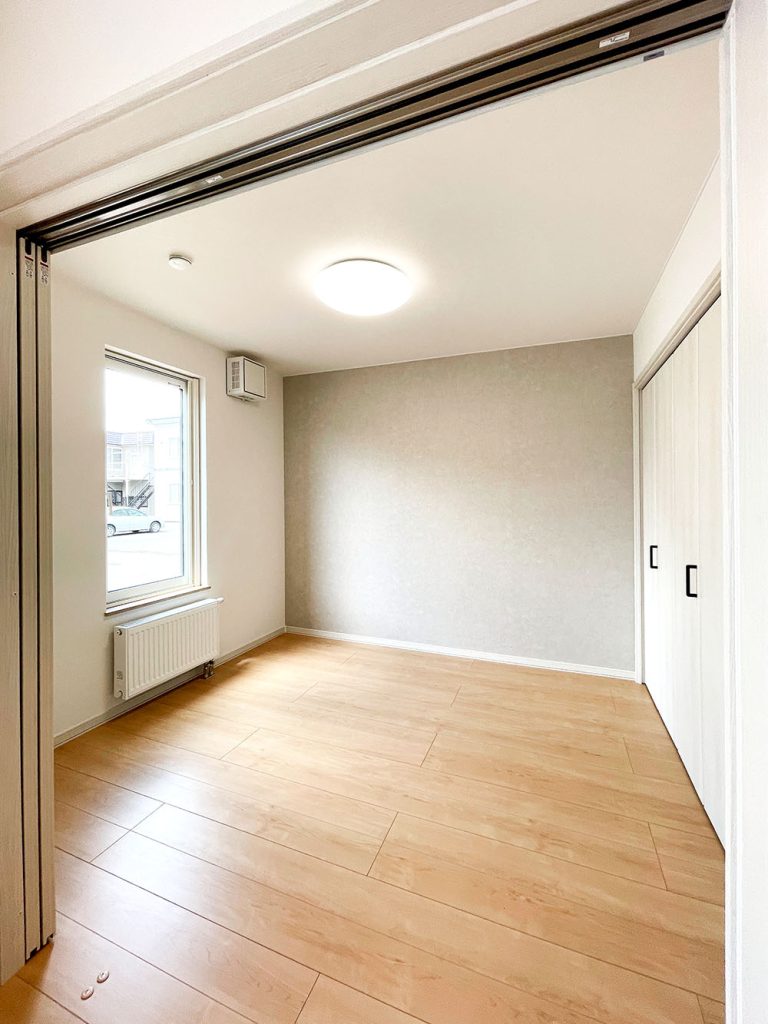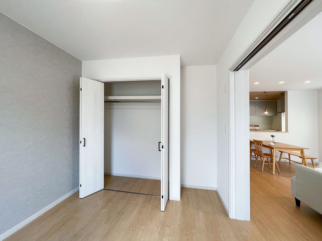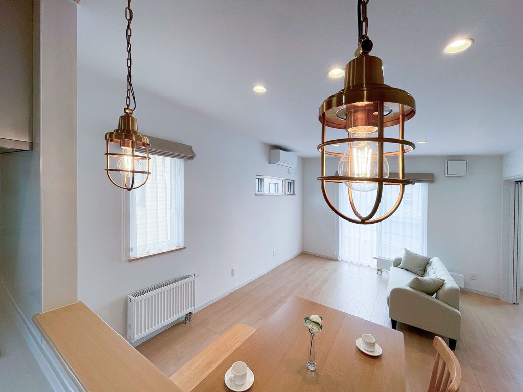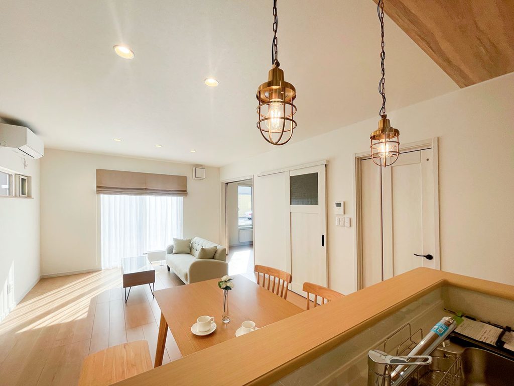 16帖のLDKですが、リビング横の5.25帖の洋室があることで少し空間に広がりを感じる事ができます。引き戸で開口部が広くなるので、その効果を高めてくれます。