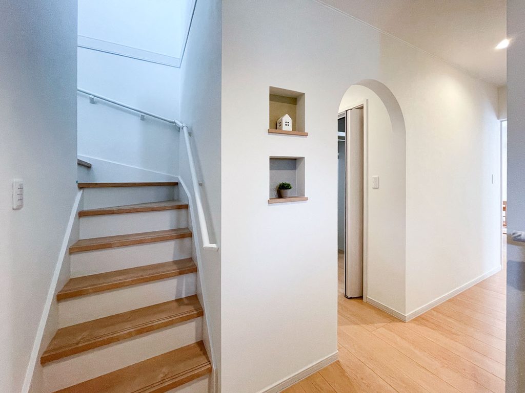 「Rのある家って?」とお思いかと思いますが…. 家の中開口部上部が「R=アール」になっているところが多数あるからです。アールがあることで家の中に丸みがでて、優しいイメージになりますよね!