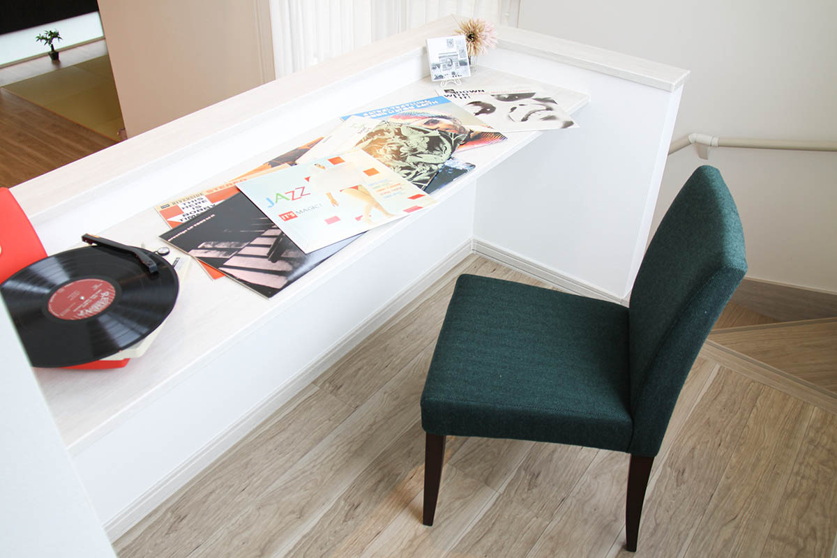 一階リビングに横には、和のテイストの「ヌックスペース」があり、ここではお昼寝をしたり読書を楽しんだり。家の中を楽しむ仕掛けがいっぱいのマイホームです。