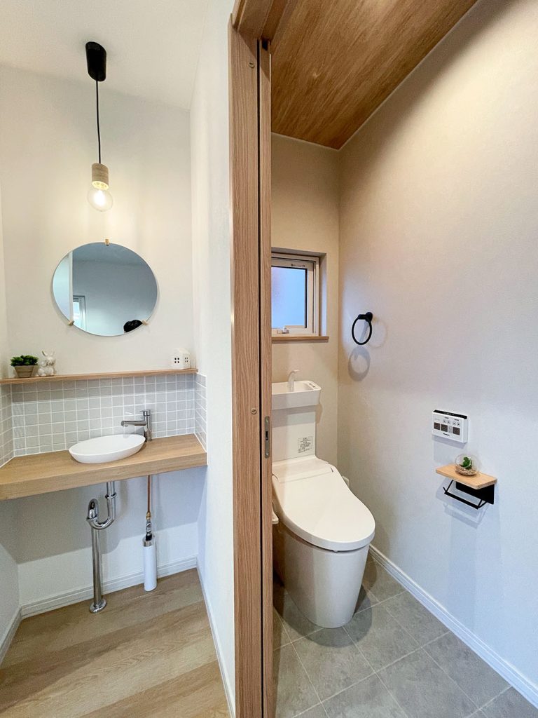 手洗い器の横はトイレになります。トイレは引き戸になっています。