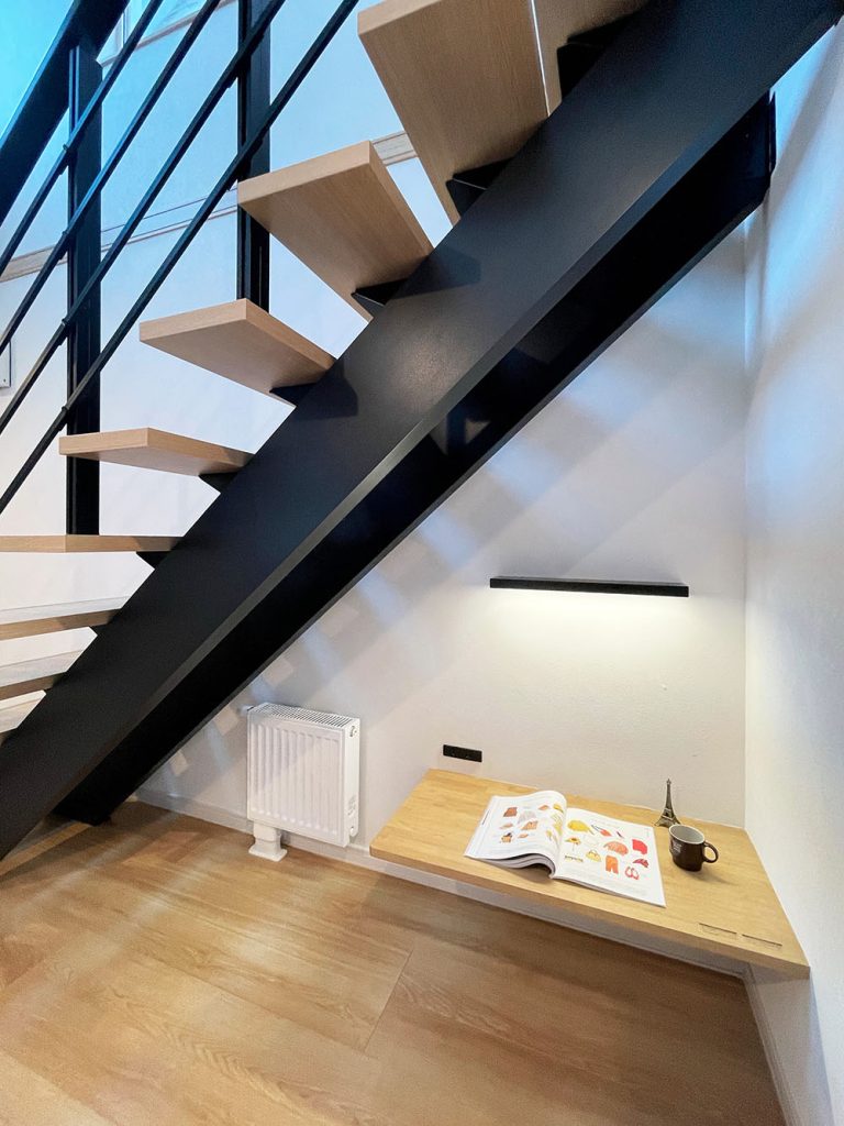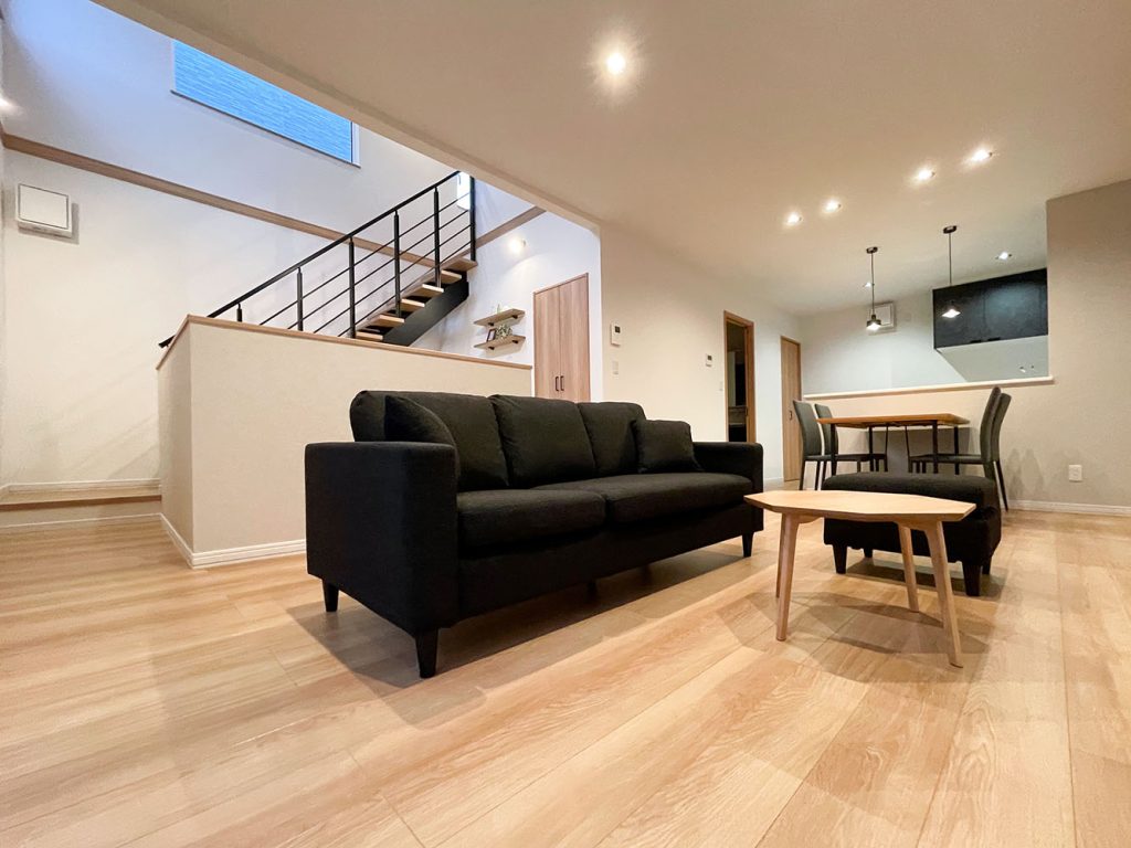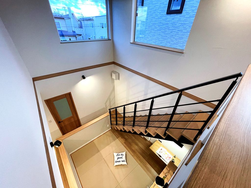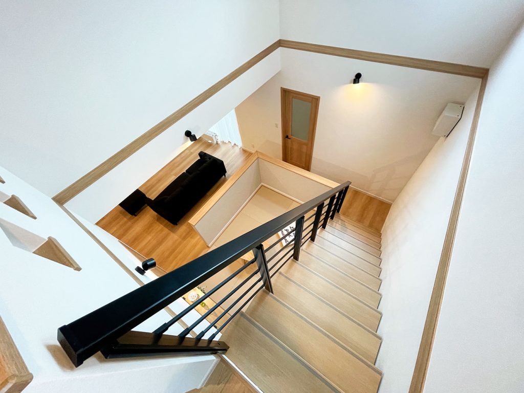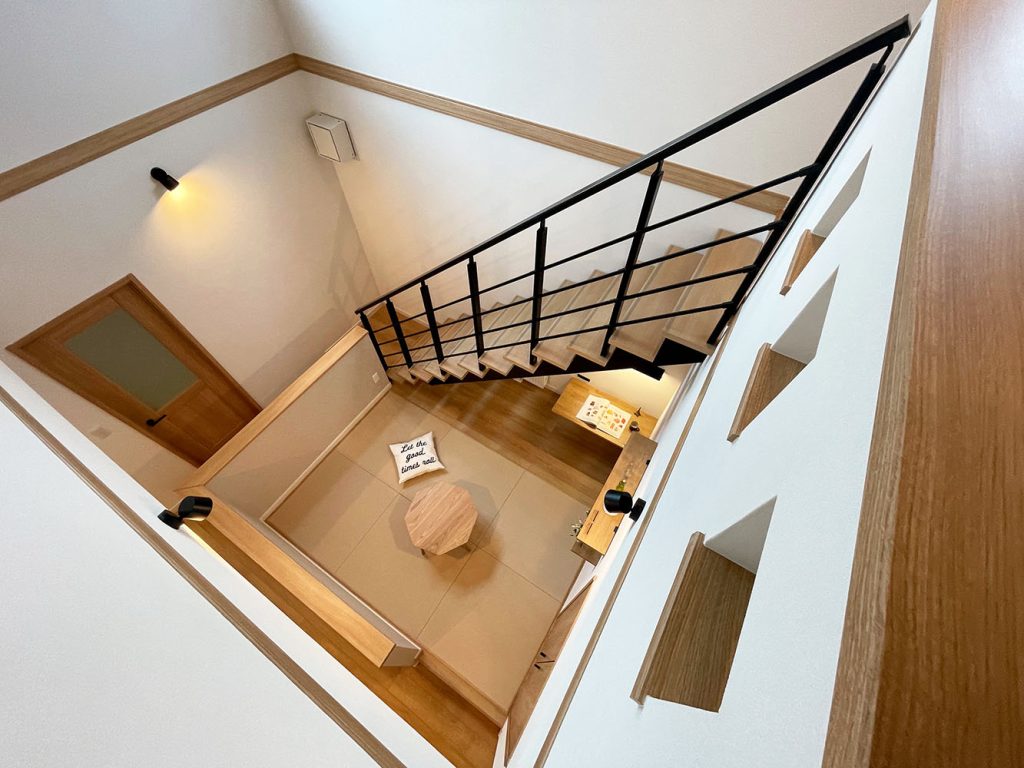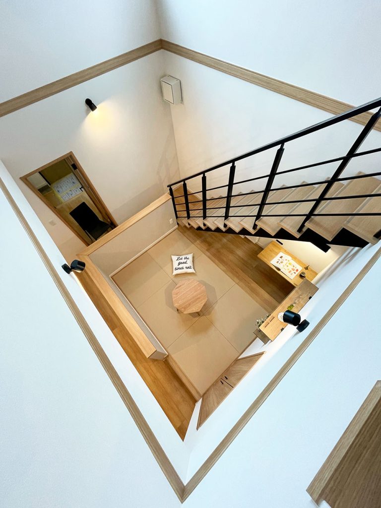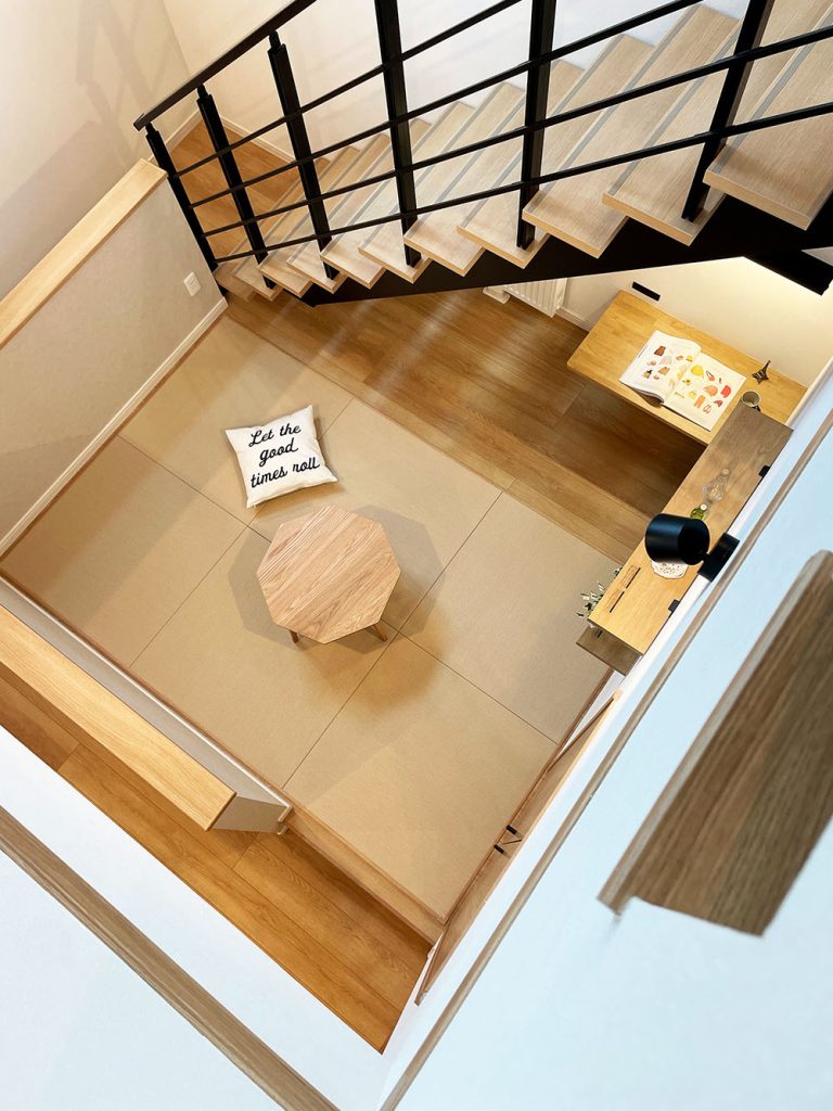 2階から見るとこんな感じです。階段下にはカウンターが設けられていますので。ここでは簡単か事務やお子様のお勉強スペースとして重宝しそう。勉強したくなっちゃいますよね。そしてすぐにゴロリが気持ちいい!