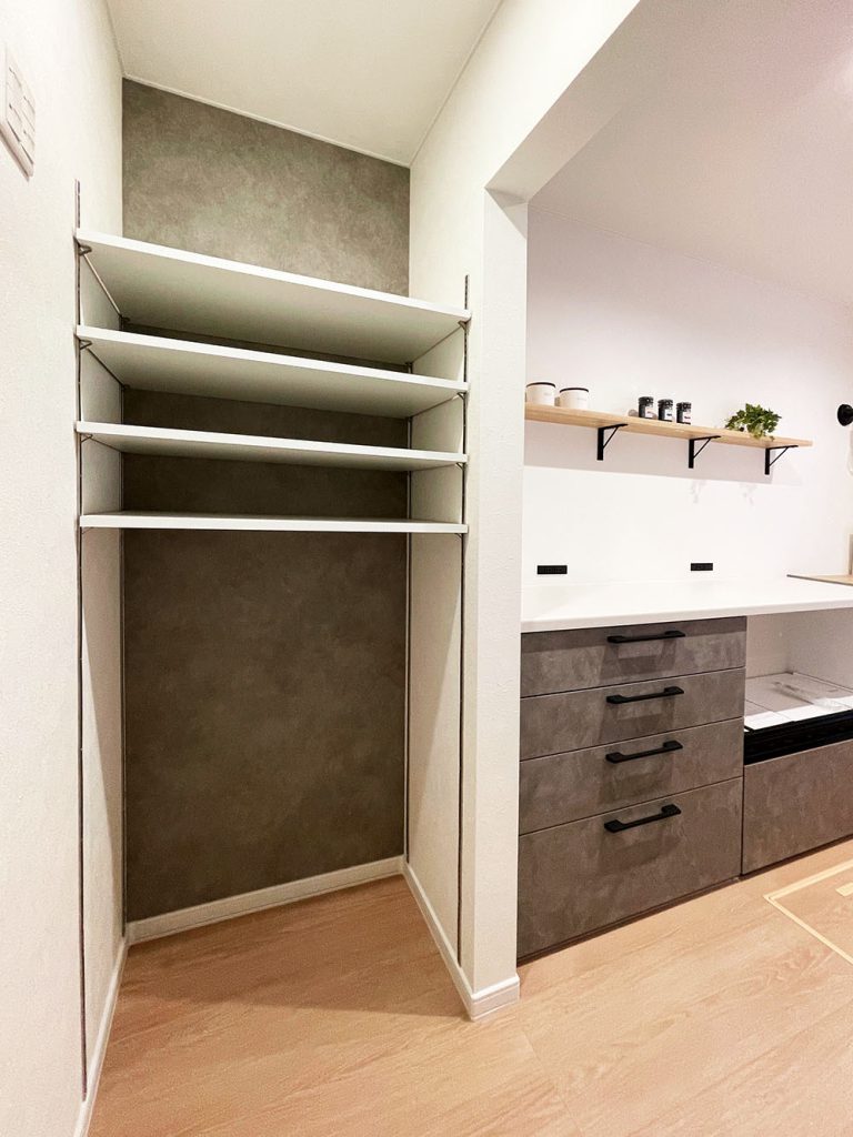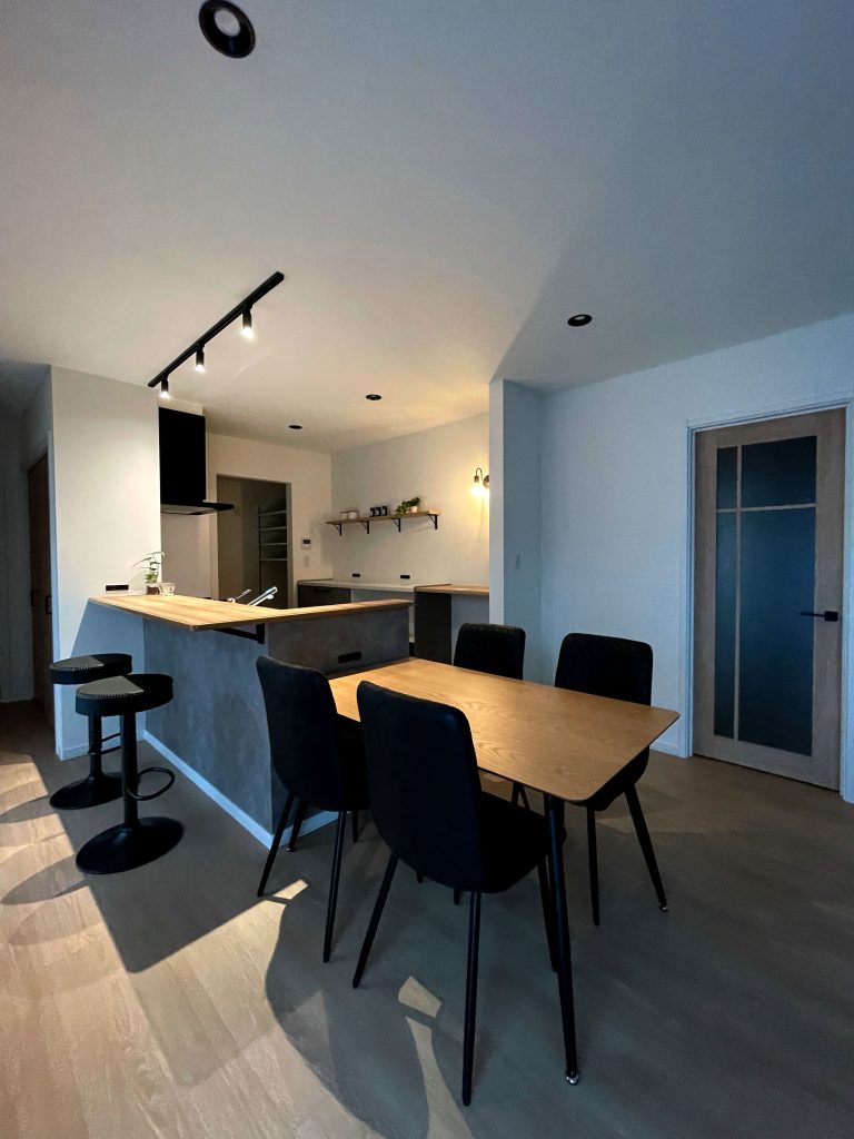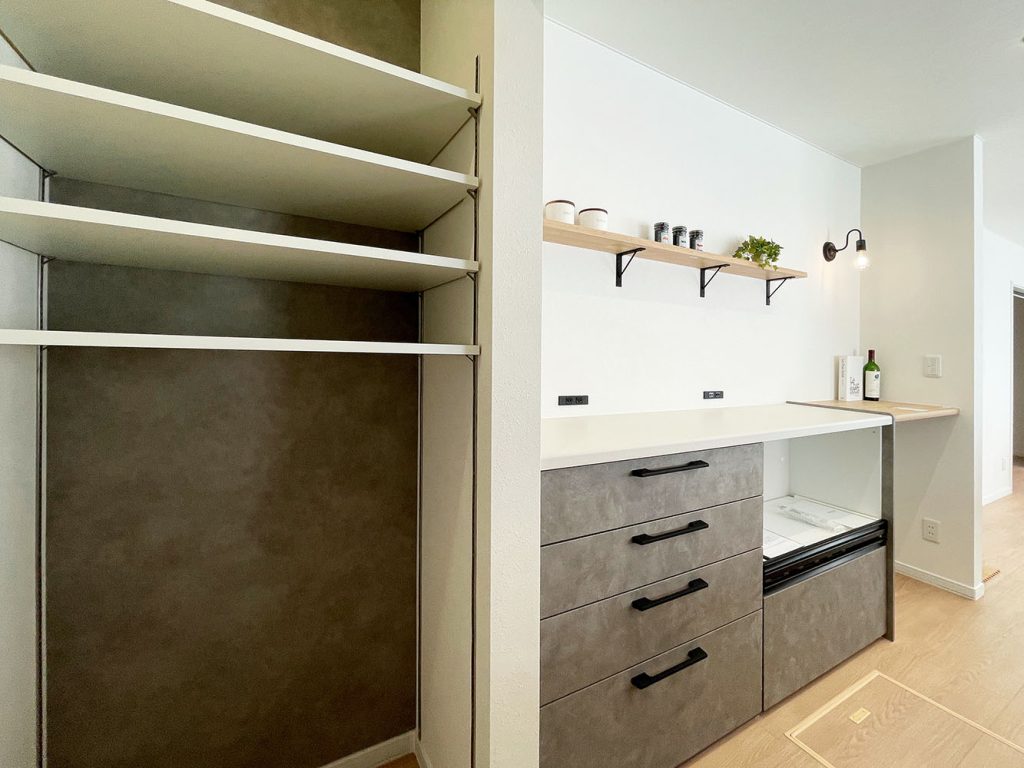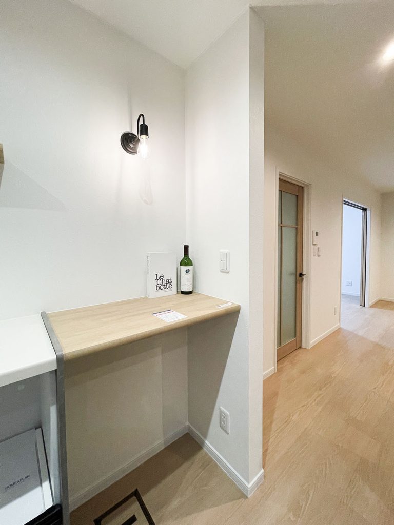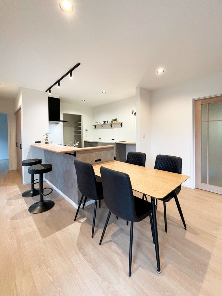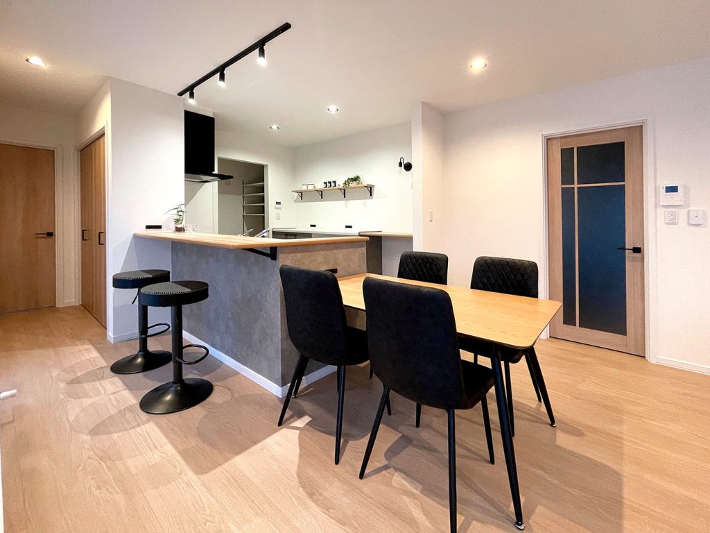 キッチンは対面式になっていて、カウンターも広め。このスペースに椅子を置くとバーの雰囲気です。