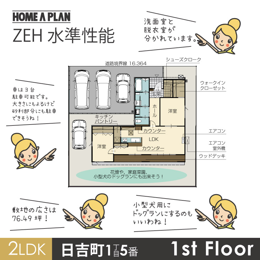 車は大きさにもよりますが、3台くらい駐車可能です。レイアウトだとちょっときつめかもしれません。
