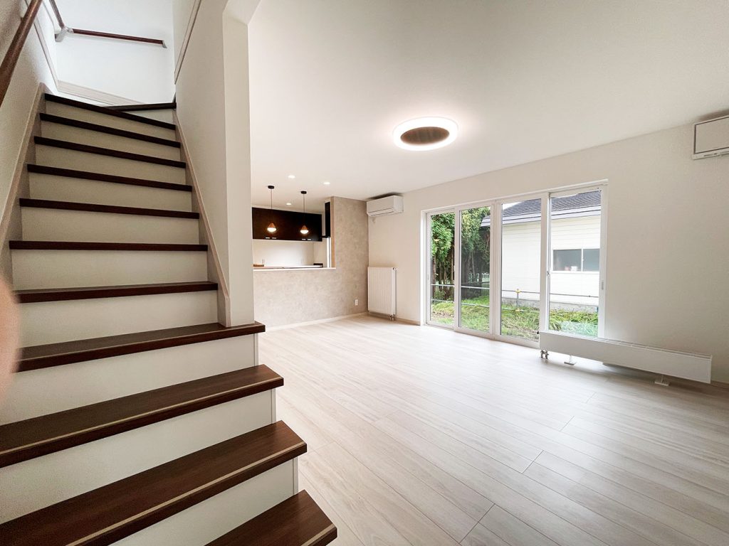 建物は4LDK、収納多数が魅力。階段はリビングから利用できる配置。