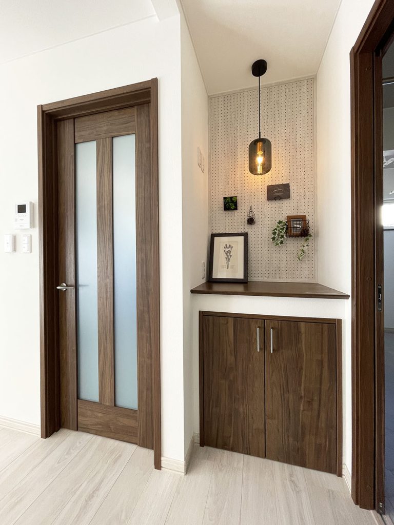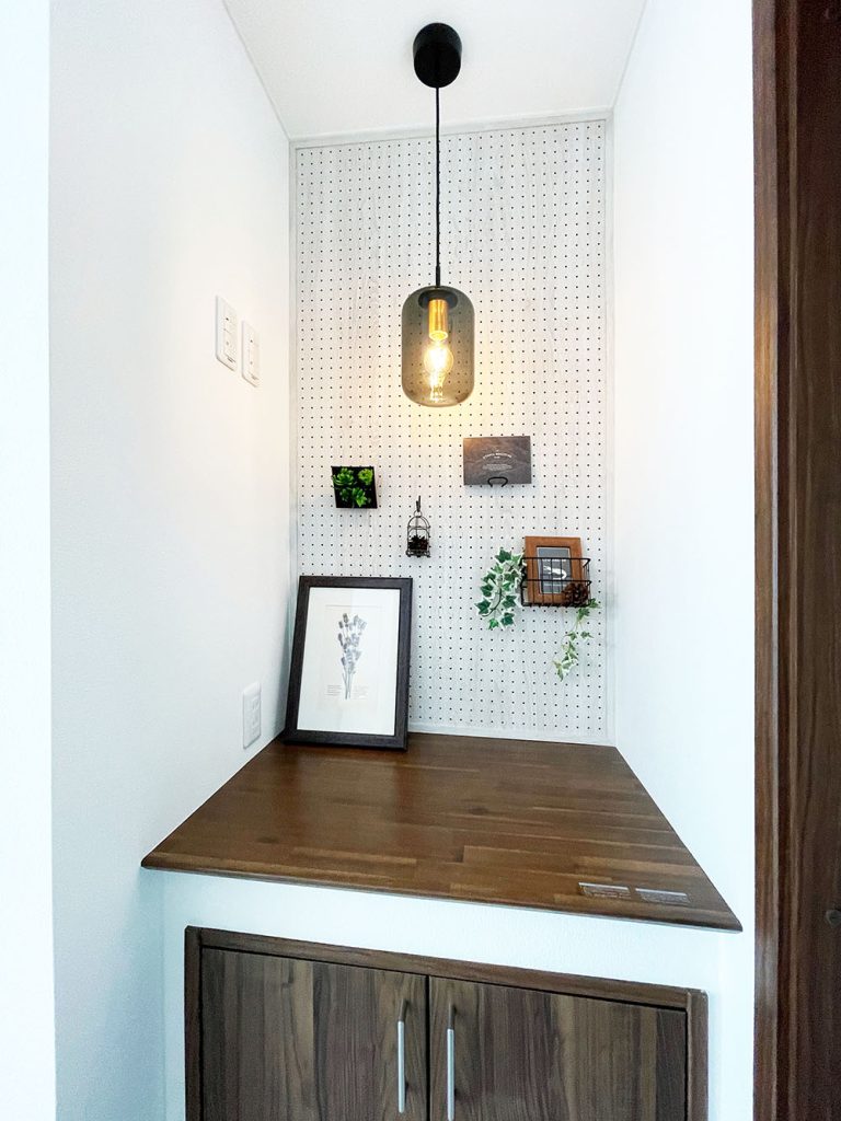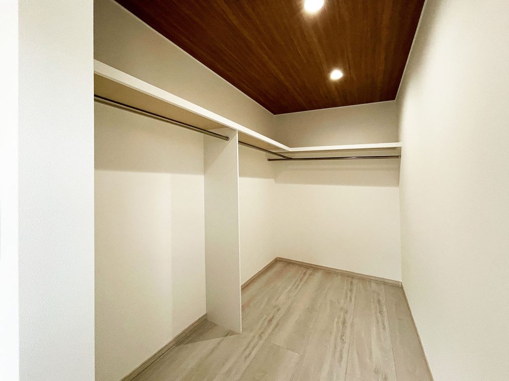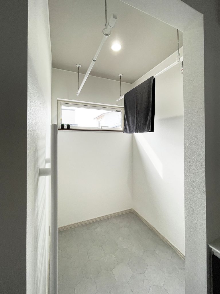 洗面脱衣室横のドライスペース。お洗濯ものを干すのはもちろん、収納ケースを入れてファミリークローゼットとしても重宝します。