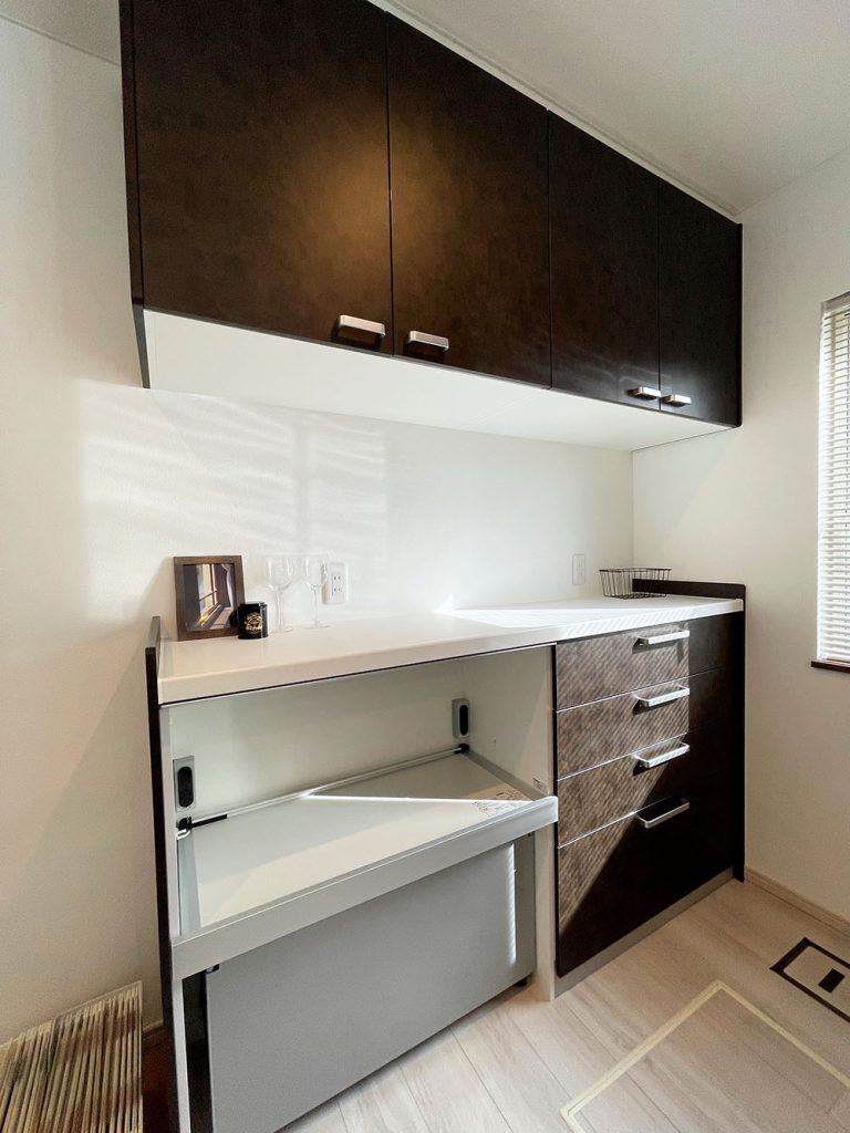 リビングにいる家族とお話をしながら、お料理作りやかたづけができます。