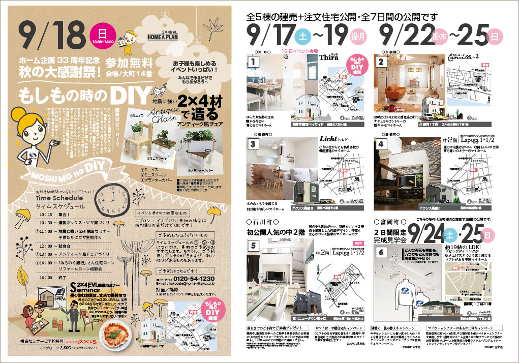 さて、今週末から始まります、ホーム企画、地震・火災に強い2X4EVL 住宅フェアを開催致します!建売住宅、自由設計住宅を含め、6通りのマイホームを見学する事ができます!