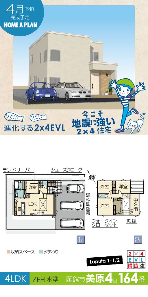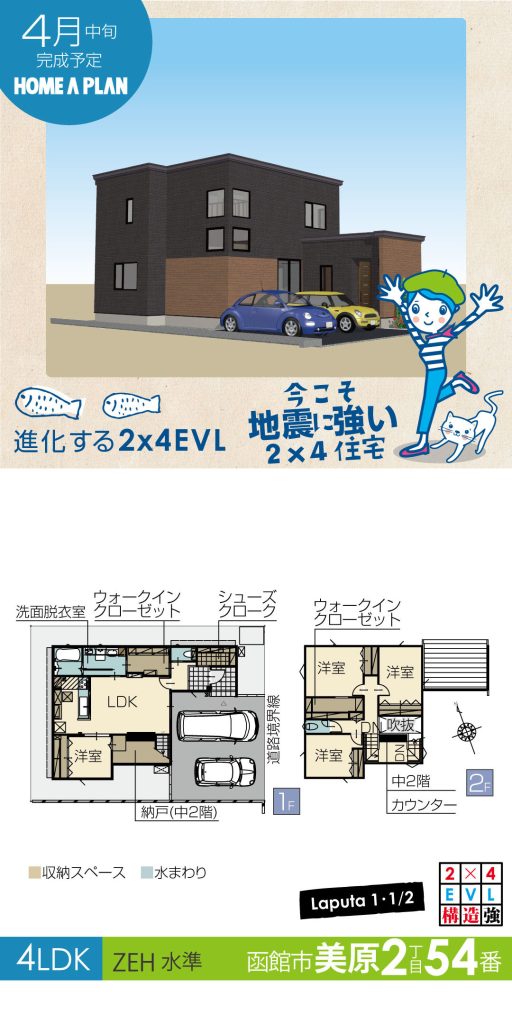 函館市美原2丁目の物件です。学校区の中央小学校まで徒歩3分。買い物交通に便利なエリア。建物は、「家の中も眺めがいい、中2階のある家、lapura1・1/2」です。収納多数が魅力です!