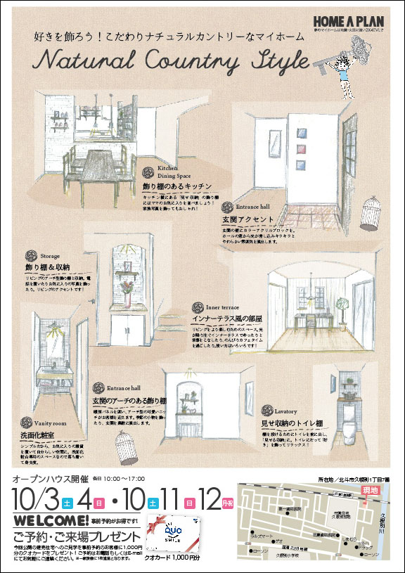 今週末の10月3日(土)4日(火)は、北斗市久根別1丁目にて新しい建売住宅の完成見学会を予定しております。今回の建物のテーマは「ナチュラルカントリー」