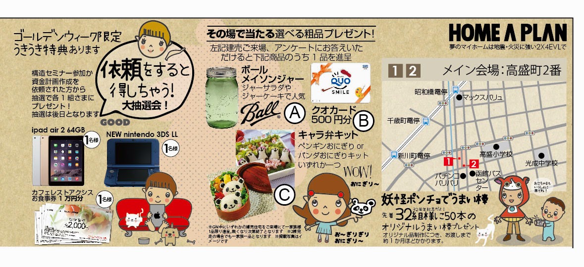 今年の目玉は、なんといっても、「各建売住宅にご来場で、