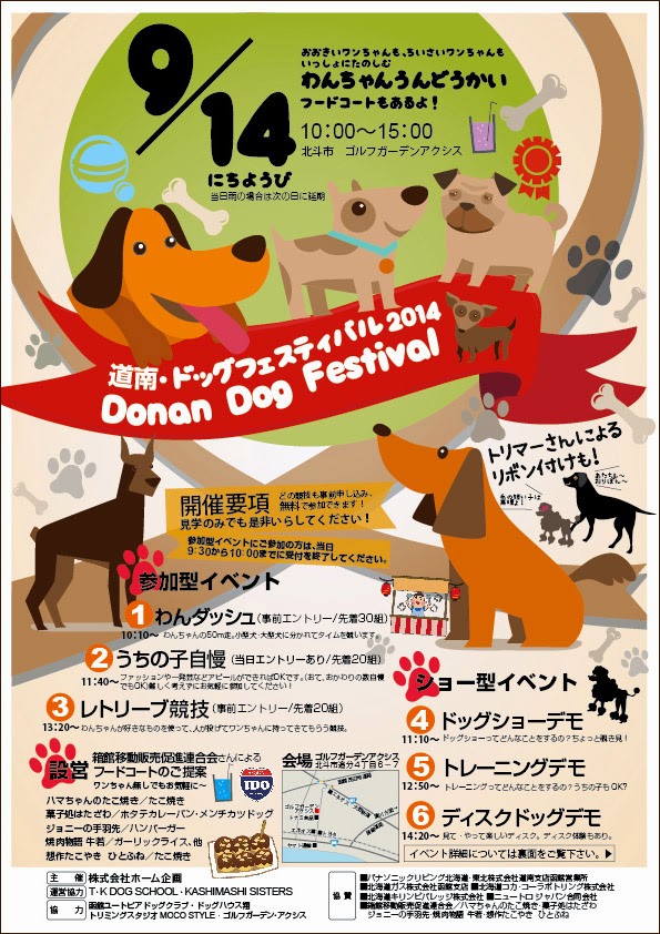 さて、来る9月14日は、道南ドッグフェスティバルが開催されます!!