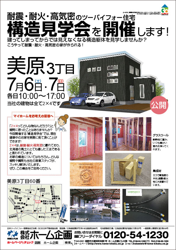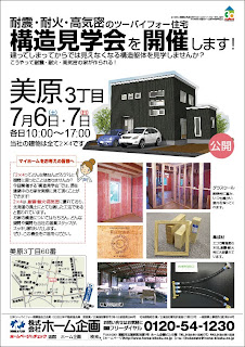 明日の7月6日(土)・7日(日)は、ホーム企画の分譲地、アクシス美原学園台にて、構造見学会を開催いたします!