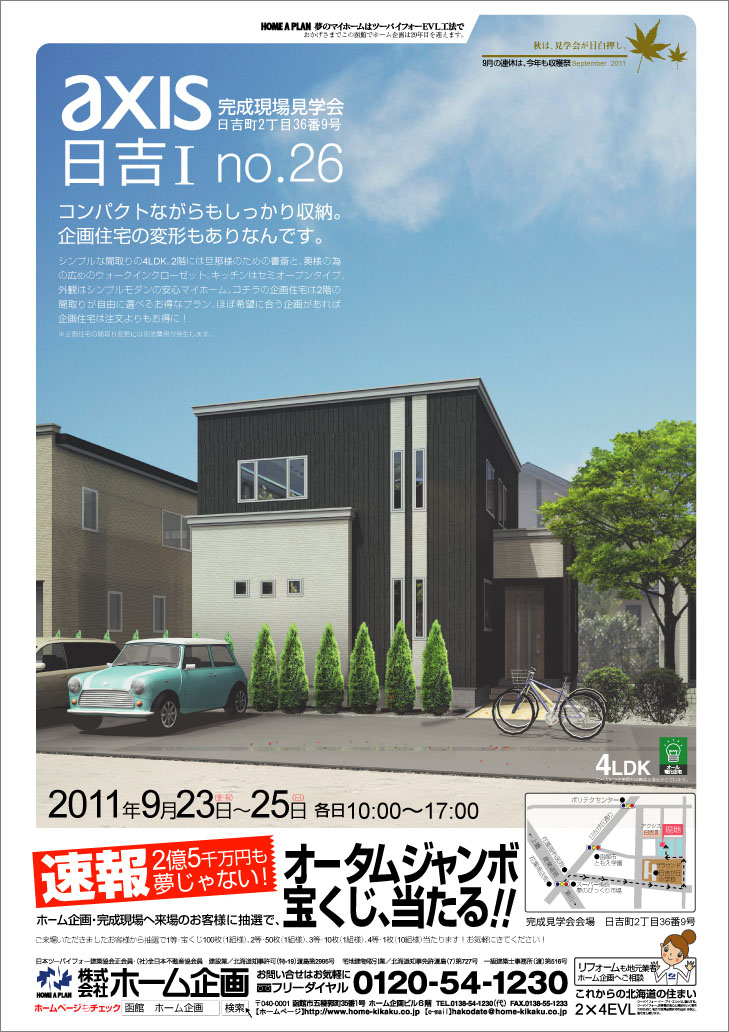 明日の23日(金・祝)から25日(日)までは、弊社分譲地のアクシス日吉Ⅰにて完成現場公開を開催いたします!今回の公開のマイホームは、シンプルな間取りの4LDK。