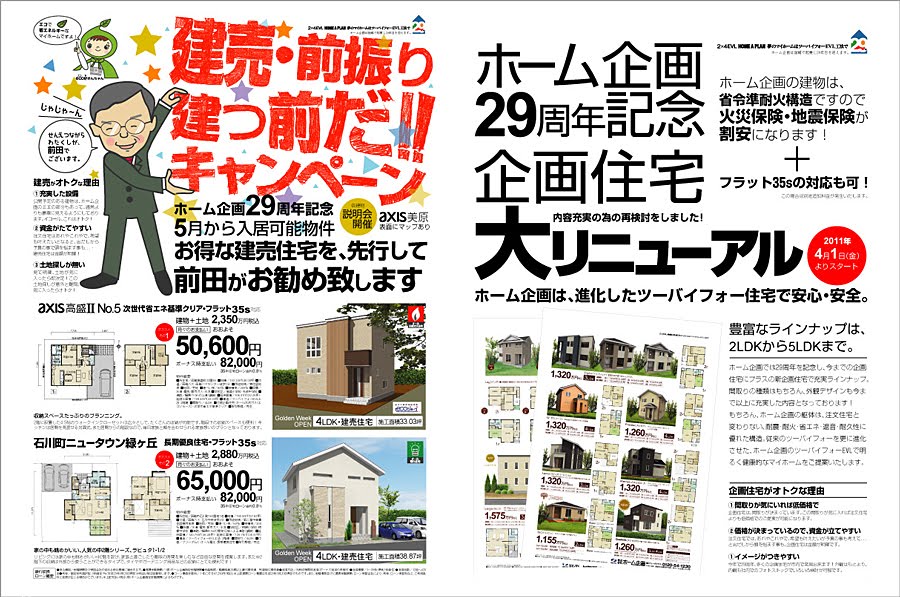今回は、ホーム企画の29周年記念、企画住宅の大幅リニューアル!などなど、沢山のイベントを・キャンペーンをご用意いたしております! オトクな建売住宅は5月に完成・公開を予定しております。住宅ローンのご相談や、間取りなどのご相談などもお気軽に。