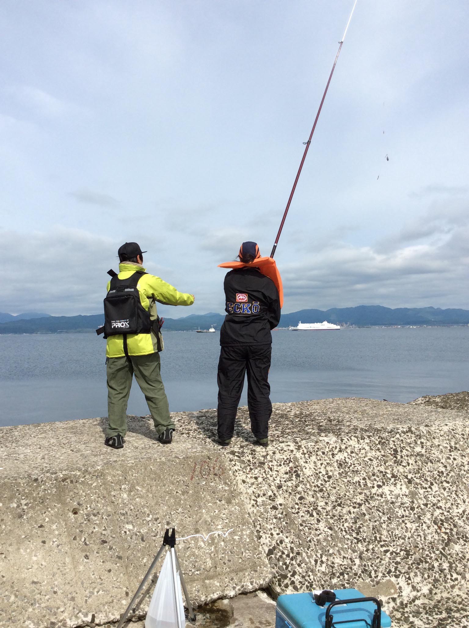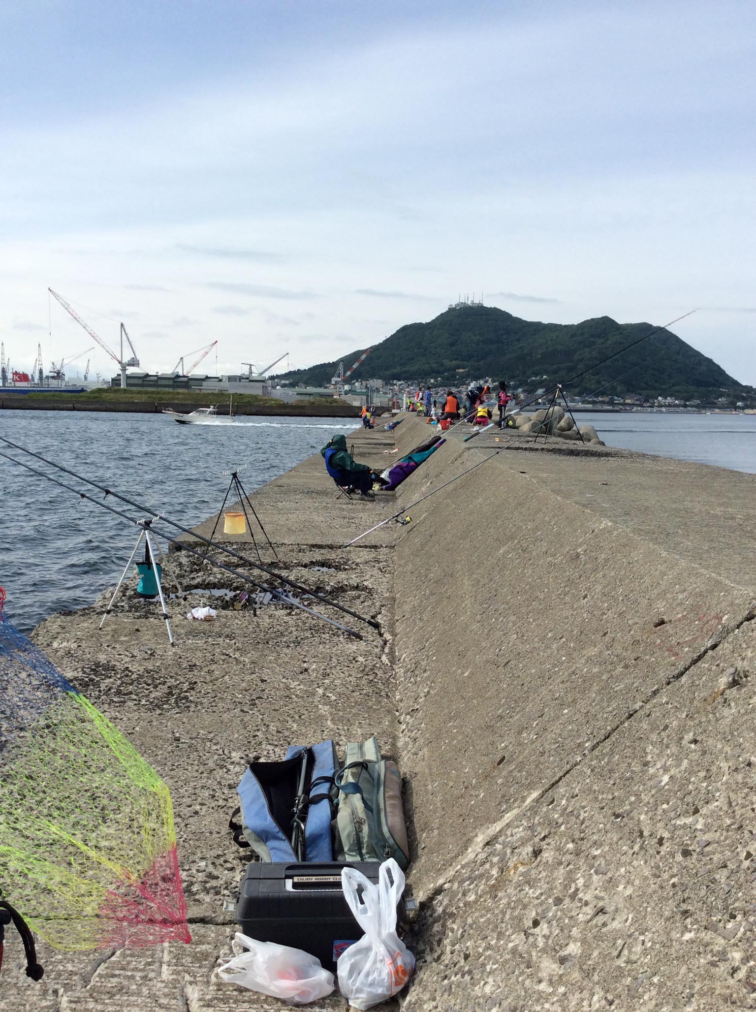 朝の集合。そして船に乗りこみます! 堤防まできましたら釣りの開始です!